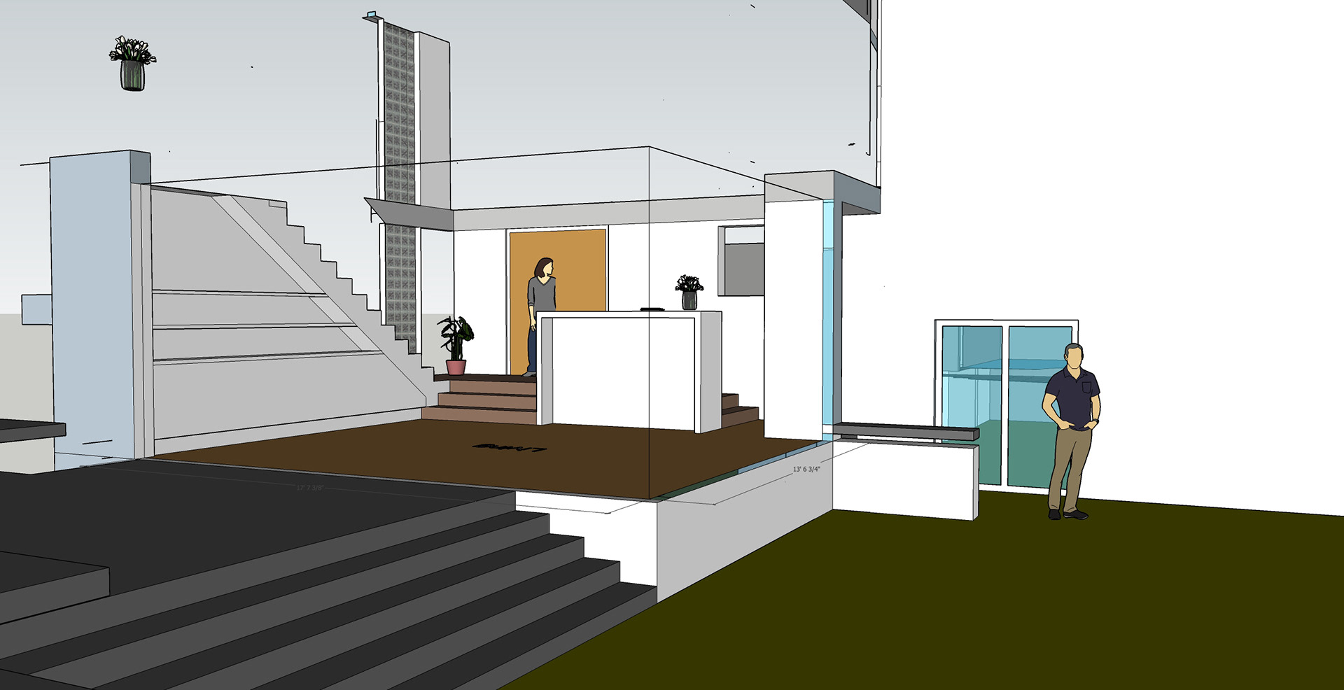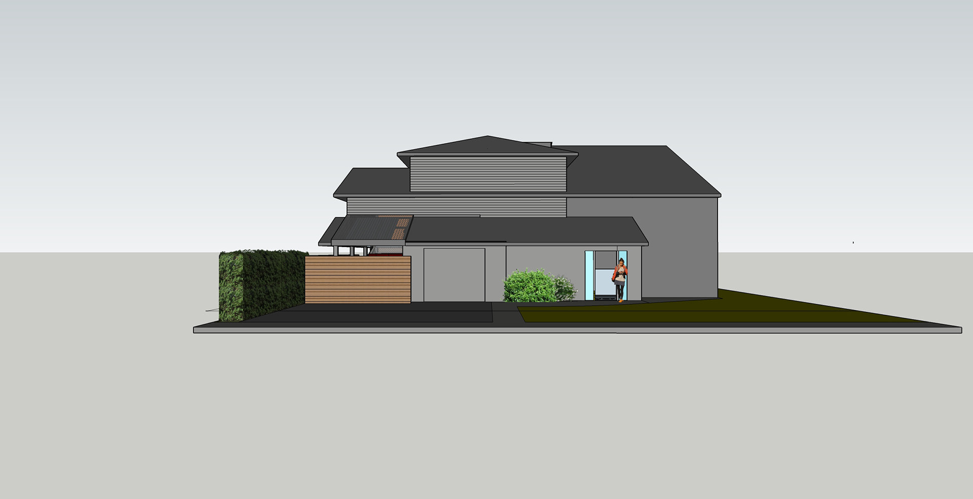 Garage at 45 deg begins to open up the facade